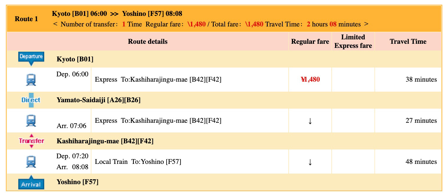 • 1:15 PM : Taxi/Bus to Yoshino Station (Leave for Nara)